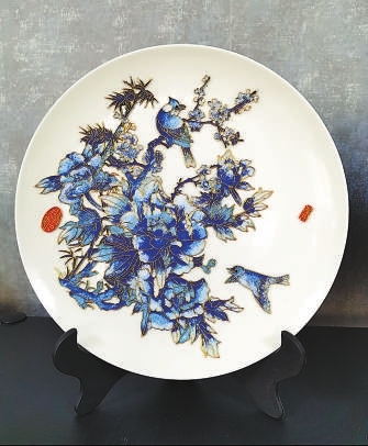 師生共同創(chuàng)作的傳統(tǒng)花卉紋樣掐絲瓷盤畫