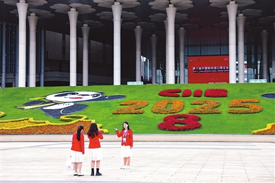 11月4日,志愿者在第八屆進博會舉辦場地——國家會展中心(上海)留影。第八屆中國國際進口博覽會將于11月5日至10日在上海舉行。目前,各項工作準備就緒,靜待盛會開幕。