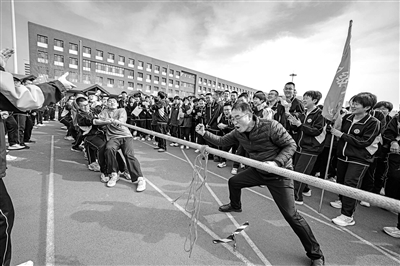 山東省濟南市歷城二中學生在進行拔河比賽。 學校供圖