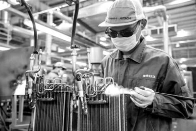 學生在?校企共建的智能制造實訓室內實踐操作。