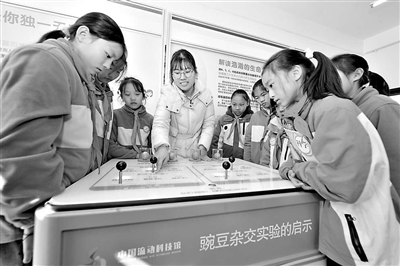 11月25日,學生在流動科技館體驗科技展品。中國流動科技館湖北省區域襄陽市保康站巡展走進保康縣歇馬鎮小學,讓學生們“零距離”學習科技知識,感受科技趣味,接受科普教育。