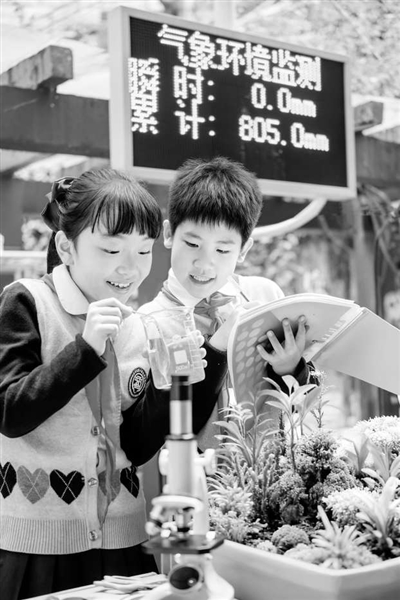 重慶市巴蜀小學(xué)教育集團(tuán)學(xué)生開(kāi)展科學(xué)探究。