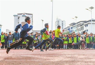 湖南省永州市道縣第四小學(xué)學(xué)生在參加跑步比賽。 蔣克青 陳敏敏 攝
