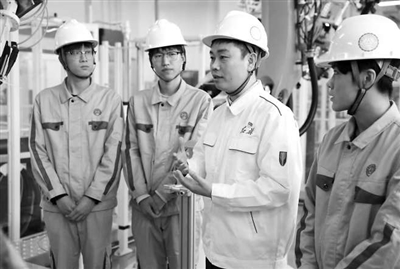 長春汽車職業技術大學優秀校友、全國人大代表楊永修(右)在校中廠開展現場教學。