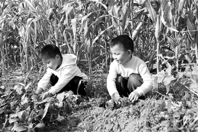 浙江省諸暨市暨南街道街亭幼兒園中班的孩子們前往菜園進行蔬菜種植。 陳霞芳 攝