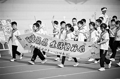 ①華中師大一附中光谷湯遜湖學校舉行愛眼趣味運動會。 武漢市青少年視力低下防制(預防控制)中心供圖