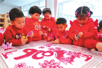 12月29日,甘肅省定西市安定區幼兒園的小朋友在制作手工迎新年。