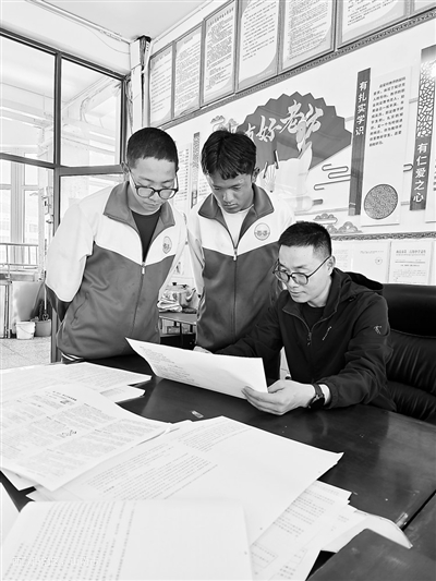 侯純廣給山南市第二高級中學學生輔導作業。學校供圖