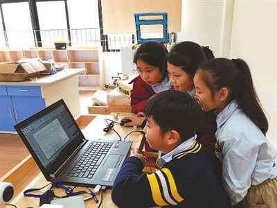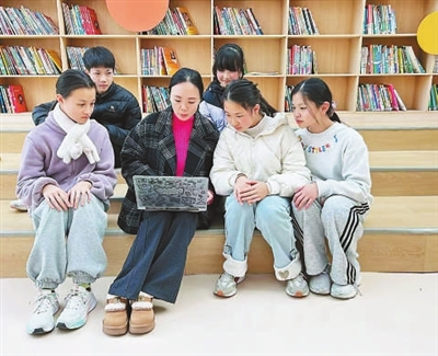 重慶市江北區(qū)濱江小學校師生在校園數(shù)字化閱覽室開展主題共讀活動。學校供圖