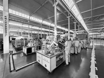 在唐山高新技術產業開發區產教聯合體建設的機器人共享智能制造工廠中,唐山工業職業技術大學學生正在開展實踐活動。資料圖片