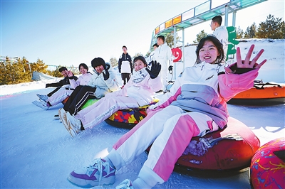 不遠處的雪圈滑道上正在上演速度與激情。學生們三五結伴乘雪圈順坡而下,寒風撲面,雪末飛濺,驚呼聲與歡笑聲隨著雪道起伏回蕩?!澳欠N自由又刺激的感覺,是在教室里完全體會不到的。”學生溫傈然滑至終點,臉上帶著運動后的紅暈,呼著熱氣,興奮地說。
