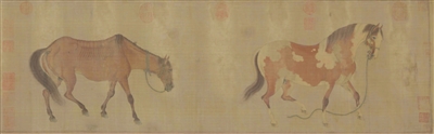 (元)任仁發《二馬圖》 28.8×142.7厘米 絹本設色 故宮博物院藏