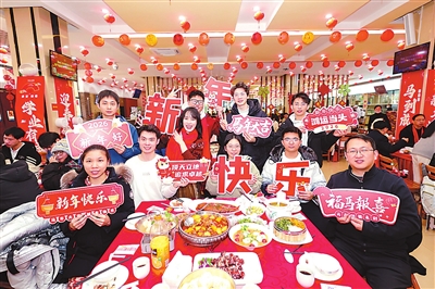 2月11日,華中科技大學組織師生吃新春團年飯。迎春會、寫春聯、包餃子……新春將至,多所高校為寒假留校師生組織精彩活動,準備豐盛的團年飯,送上誠摯祝福。新華社發