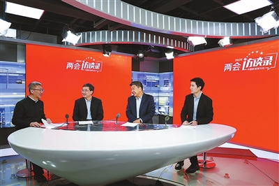 3月3日,全國政協(xié)委員,北京師范大學國家高端智庫教育國情調查中心主任、教授張志勇(右二),中共北京市委教育工作委員會副書記、北京市教委主任李奕(左二),國家博物館社會教育部主任、研究館員周靖程(左一)做客中國教育報刊社“兩會訪談錄”。馮子琪 攝