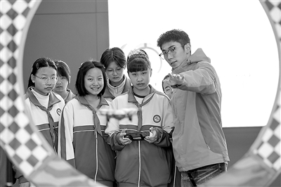 四川省眉山市彭山區第二中學學生在體驗無人機激光射擊。 通訊員 翁光建 攝