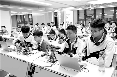 人工智能課上,學生在學習智能體機器人知識。學校供圖