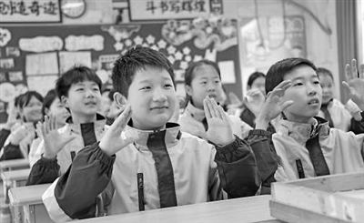 浙江省臺州市仙居縣橫溪鎮(zhèn)中心小學,學生們伴隨著歡快的音樂,開展特色課桌操活動。 王華斌 攝