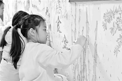 北京市朝陽區教育科學研究院附屬小學分校學生在繪制膳食寶塔。