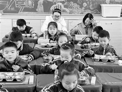 河南省鄭州市金水區新柳路小學定期組織家長陪餐活動。