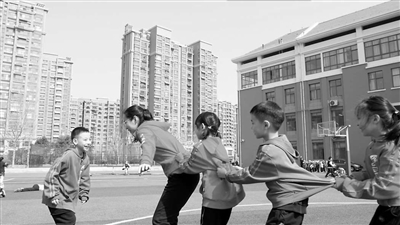 山東省濟南市景山小學師生在課間玩游戲。 本版圖片均由學校提供