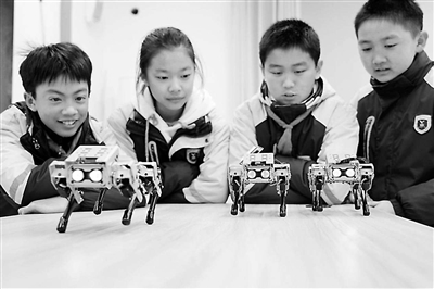 無錫市春城實驗小學的學生在觀察機械狗的步態反饋。徐潤希 攝