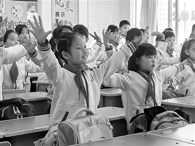 河北省秦皇島市海港區的小學生在做室內課間手語操。周洪松 攝