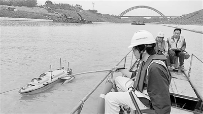 ①企業導師指導黃河水利職大學生進行平陸運河水下地形測量。