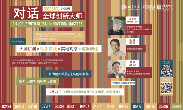近日,北大·德稻“對話全球創新大師”系列公選課迎來了新學期的首次課程。該系列課程以創新創意設計為核心講授主題,由北京大學工學院和德稻教育共同策劃。