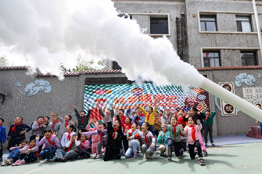 《科學嘻游記》以新時代為背景,以中小學生耳熟能詳的西游記情節做鋪墊,并在此基礎上進行創意,以主人公唐僧去西方學習先進科技為故事主線,展現出了全新一版的唐僧師徒組建團隊、制定計劃、西天取經的過程。劇中加入了多項有趣的科學實驗:“世紀大炮”中蘊含著液體氣體相互轉化的物理知識;“胸口碎大石”中包含了壓力與壓強的知識;“長吸管喝可樂”告訴孩子們在生活中如何利用大氣壓強;孫悟空騎著的新式噴氣推進車讓孩子們大開眼界……這些劇情讓孩子深度沉浸在科學劇創設的科學環境中,充分激發了他們對科學的好奇心和想象力,以及在實踐中探求科學奧秘的興趣。