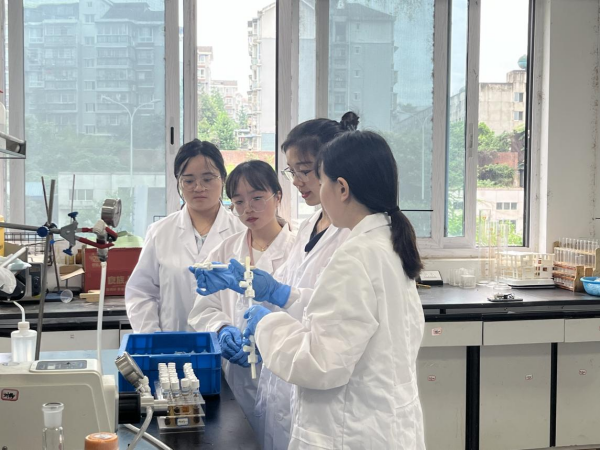 西南科技大學(xué)核素綠色循環(huán)與環(huán)境效應(yīng)團隊負責(zé)人聶小琴教授正在指導(dǎo)學(xué)生做實驗
