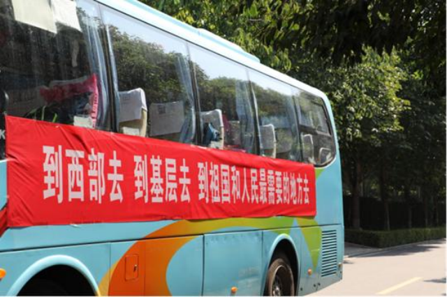 培華學子乘坐大巴奔赴西部建功立業(yè)