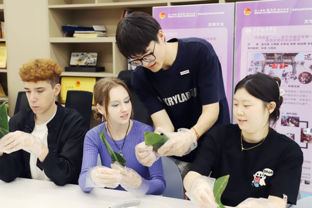 外籍留學生體驗端午節包粽子活動