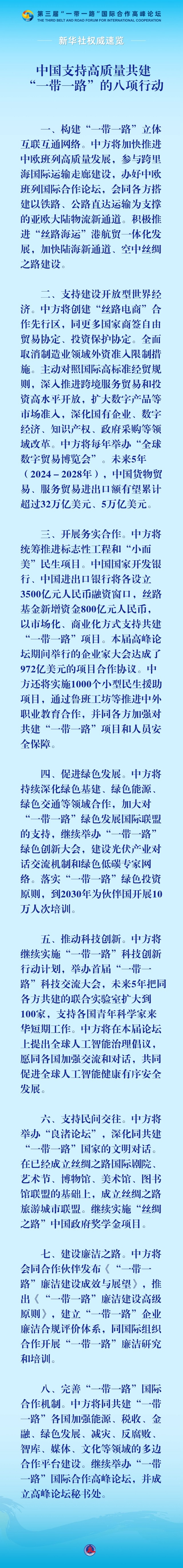 10月18日,國家主席習(xí)近平在第三屆“一帶一路”國際合作高峰論壇開幕式上發(fā)表主旨演講,宣布中國支持高質(zhì)量共建“一帶一路”的八項(xiàng)行動。