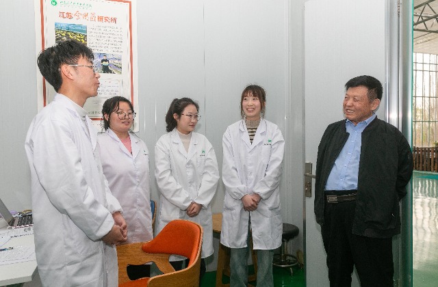 李玉院士(右一)與江蘇農(nóng)林職業(yè)技術(shù)學(xué)院食用菌創(chuàng)業(yè)團(tuán)隊(duì)學(xué)生親切交流