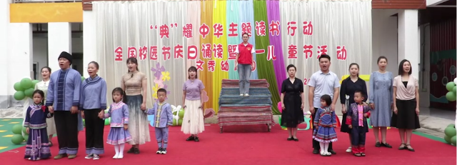 在廣西,通過開展“小手拉大手”、親子閱讀吟誦等活動,師生和家長深情朗誦《大山的女兒》,在孩子們心中播種下愛黨愛國愛家的種子。