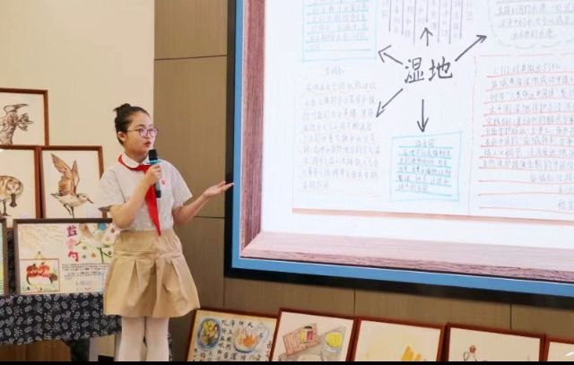 在此基礎(chǔ)上,學(xué)生就閱讀、采訪、參觀和體驗所得,制作成思維導(dǎo)圖、自然筆記,印制宣傳標(biāo)語,撰寫心得文章并進(jìn)行宣講,以自己的實際行動為保護(hù)濕地、建設(shè)家鄉(xiāng)作貢獻(xiàn)。