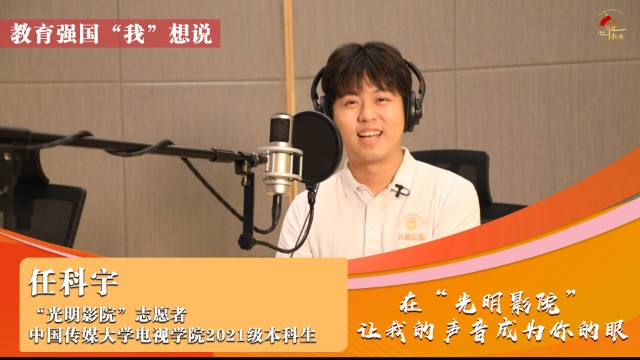 在“光明影院”,視障群體如何“看”一場電影?用聲音傳遞色彩,大學生志愿者如何詮釋“我是你的眼”?今天的教育強國“我”想說, 跟隨中國傳媒大學大學生志愿者任科宇一起走進“光明影院”,聆聽愛與希望的光影故事,感受當代大學生的責任與擔當。