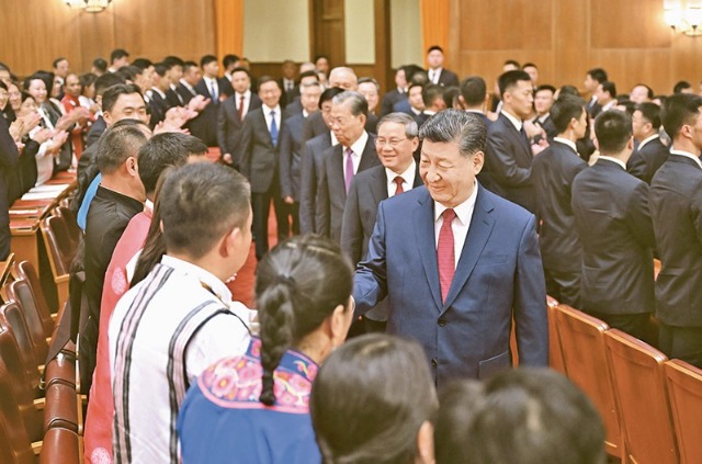 2019年3月4日下午,中共中央總書記、國家主席、中央軍委主席習近平看望參加全國政協十三屆二次會議的文化藝術界、社會科學界委員,并參加聯組會,聽取意見和建議。新華社記者 姚大偉/攝