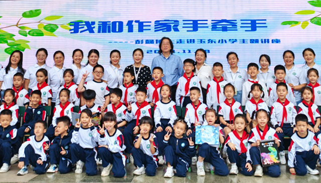 兒童文學作家彭懿作主題演講《我想把浩瀚的世界帶給孩子》,并與師生合影