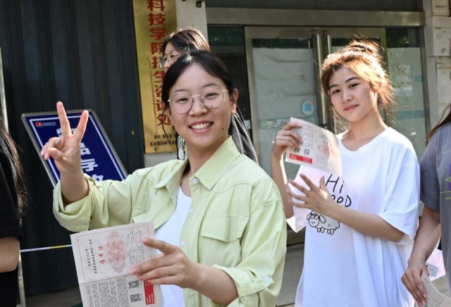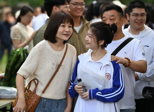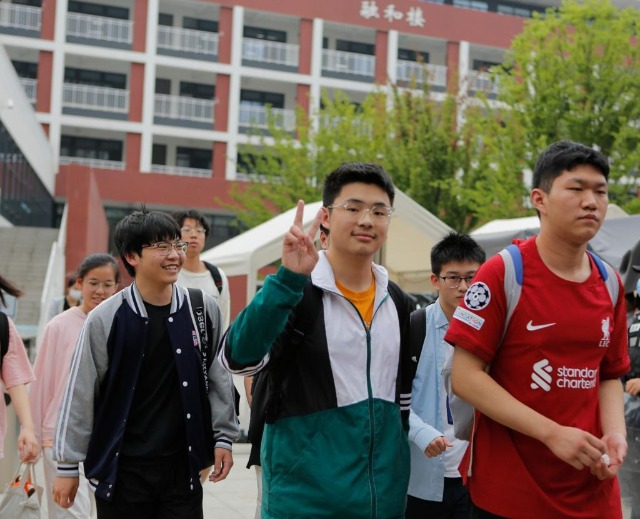 在江蘇省南京市建鄴區中華中學考點,結束首場考試的考生走出考點(2024年6月7日攝)。新華社記者 李博 攝