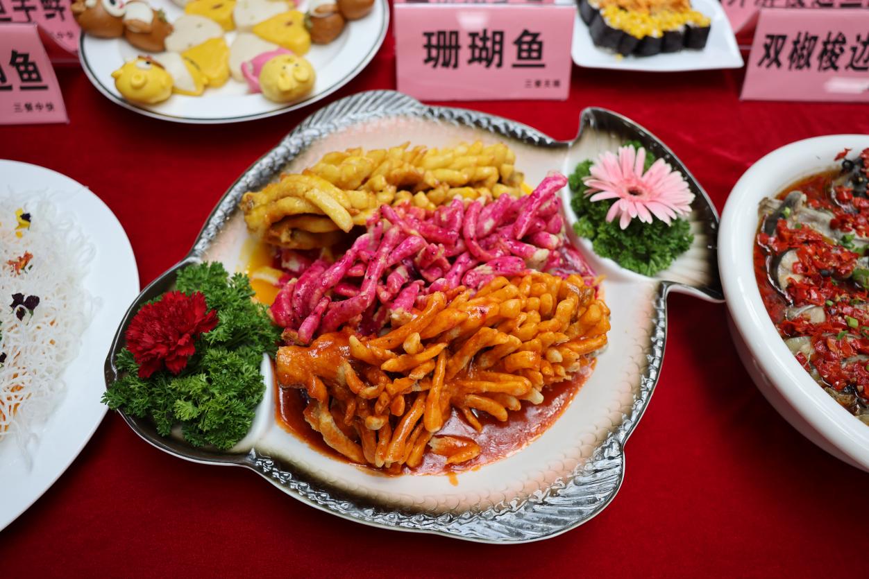 全魚宴現場,80余道魚類佳肴呈現在師生眼前。色香味俱全、儀式感滿滿。這場色香味俱全的豐盛魚宴,既是中石大為即將畢業的學子們送上的“紅山湖畢業禮”,也是為遠道而來的校友們送上來自母校的問候和祝福。