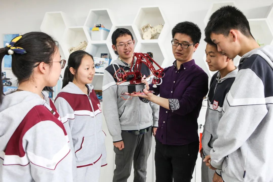 無錫一中的“求進”科創(chuàng)課程中心是學校教師增進本領(lǐng)的大本營??苿?chuàng)課程中心以每年一主題、每月一會議的形式聚焦學??茖W與工程教育現(xiàn)狀,引領(lǐng)教師團隊針對科學與工程教育過程中出現(xiàn)的各種問題進行評價反思,提出解決方案并推廣實施。反思教育實踐的過程也是探尋教育內(nèi)在規(guī)律的過程,通過專題分享將個體經(jīng)驗轉(zhuǎn)變?yōu)榧w智慧,教師工程教育的水平得到大幅度提高,校園內(nèi)部形成了濃厚的教研氛圍?!敖處焸兊姆e極性特別高,科創(chuàng)課程中心的工作與日常教學和管理相融合,以研促教,有效提升了教師的專業(yè)素養(yǎng)。”無錫一中黨委書記朱晴怡說。
