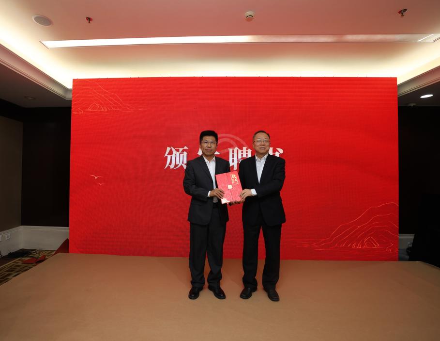 翟博常務(wù)副會(huì)長(zhǎng)為新任理事長(zhǎng)范緒鋒頒發(fā)聘書。