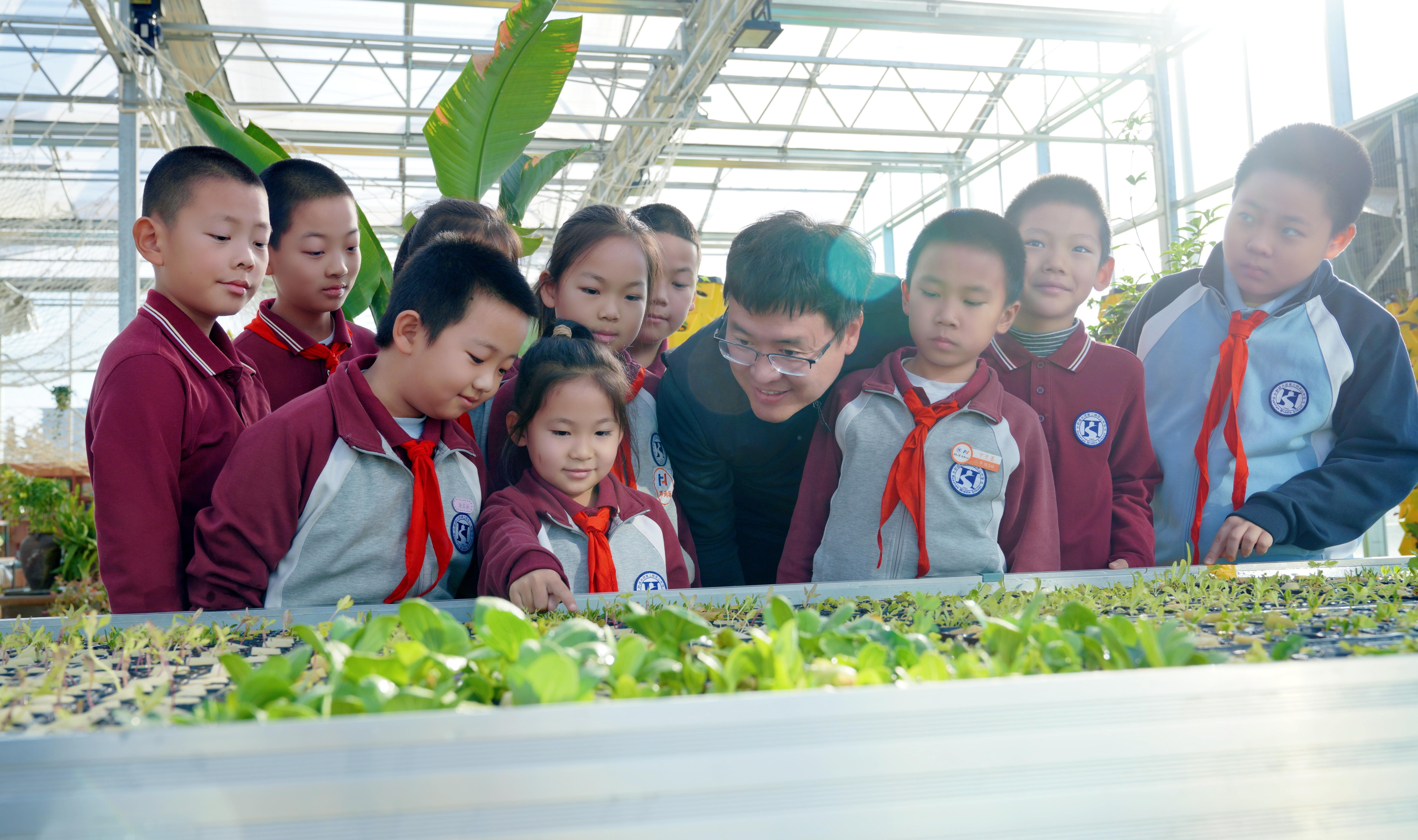 杜疆和學生們在學校生態園