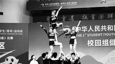 整齊、動感、熱情、奔放……第一屆全國學生(青年)運動會健美操(啦啦操)比賽在廣西師范大學(雁山校區)綜合體育館如火如荼地進行。11月7日,大學組男子單人操、大學組五人操、大學組集體技巧啦啦操等5個項目決賽激烈展開。