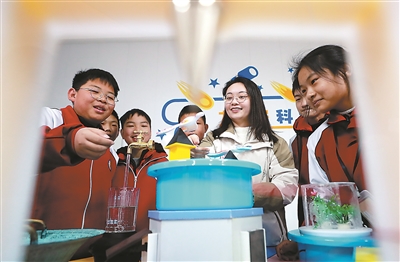 日前,陜西省商南縣鹿城中學科技小屋內人頭攢動,不時傳出歡聲笑語。原來,是長安大學第12屆研究生支教團成員在輔導鹿城中學學生開展科學實驗。