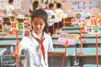 8月27日,浙江省金華市婺城小學(xué)學(xué)生在布置教室課桌。秋季新學(xué)期開學(xué)在即,各地做好開學(xué)前的準(zhǔn)備工作,迎接新學(xué)期的到來。新華社發(fā)