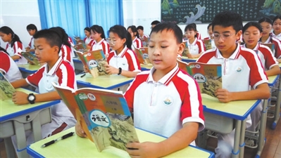 重慶市巫山縣高唐初級中學學生誦讀《三峽》。本報記者 張雅馨 攝