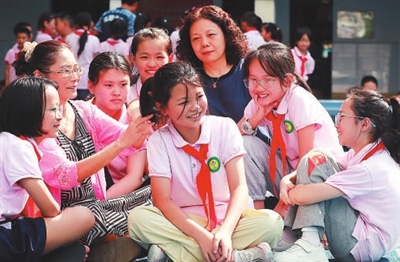 遵義市紅花崗區建文小學退休教師石盛蘭(左二)和徐明芳關心留守兒童成長,校園里到處都留下了她們和孩子們在一起的身影。