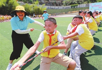 利用課余時間,遵義市匯川區第十小學組織留守兒童參加拔河活動,促進孩子們健康快樂成長。